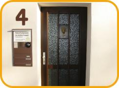 oder auf den zwei beschilderten Praxis -Parkplätzen im Parkhof in der Lange-Äcker-Straße.
